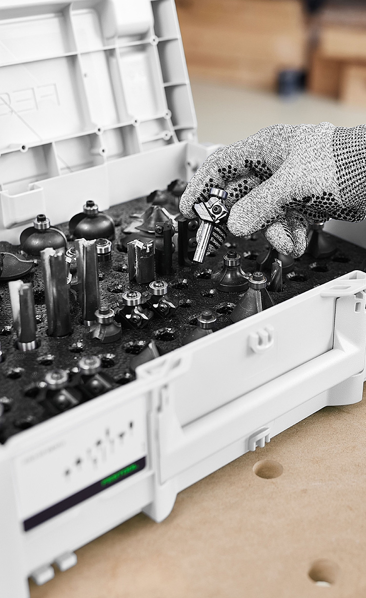 Tutte le frese sono perfettamente riposte, protette e a portata di mano. Sia nel box frese che nel pratico Systainer³ con slot per utensili di fresatura.