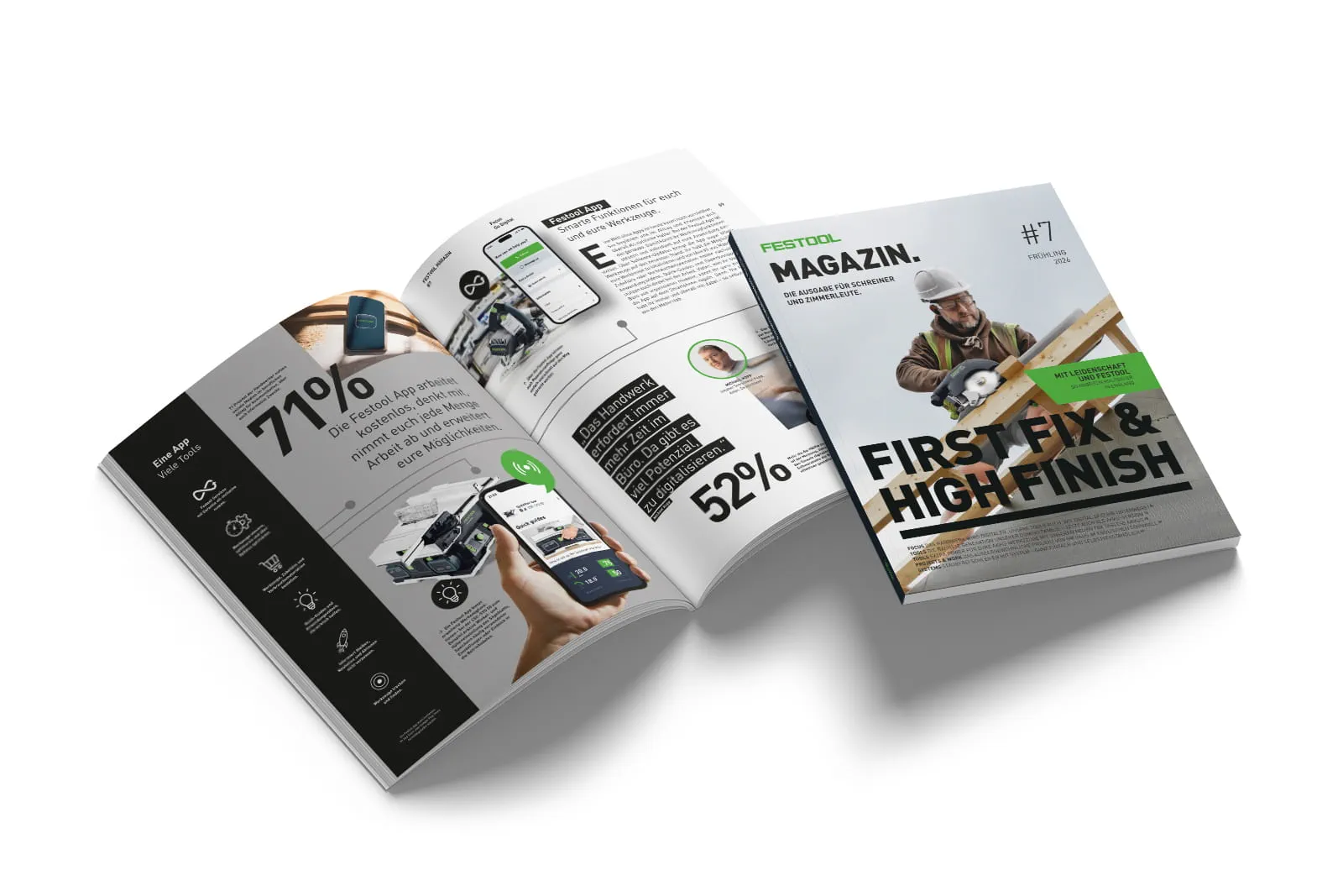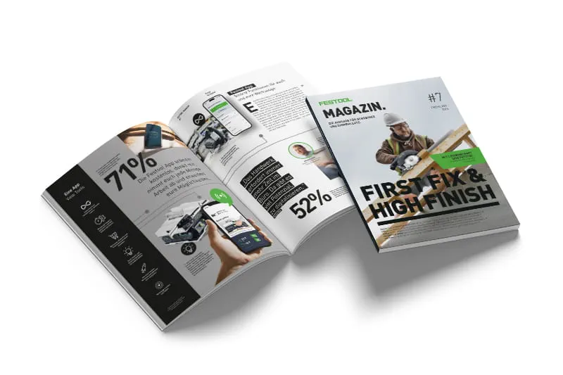 Pavimenti senza fughe ai massimi livelli, nuove levigatrici a batteria con anello luminoso, maggiore potenza grazie alle batterie senza linguetta e strumenti digitali intelligenti per il lavoro quotidiano in cantiere: nella nuova rivista Festool dedicata agli imbianchini, veri professionisti mostrano come funziona oggi l'artigianato moderno. Inoltre, pratiche soluzioni di sistema per una levigatura senza polvere, progetti stimolanti e tanti nuovi strumenti intelligenti.