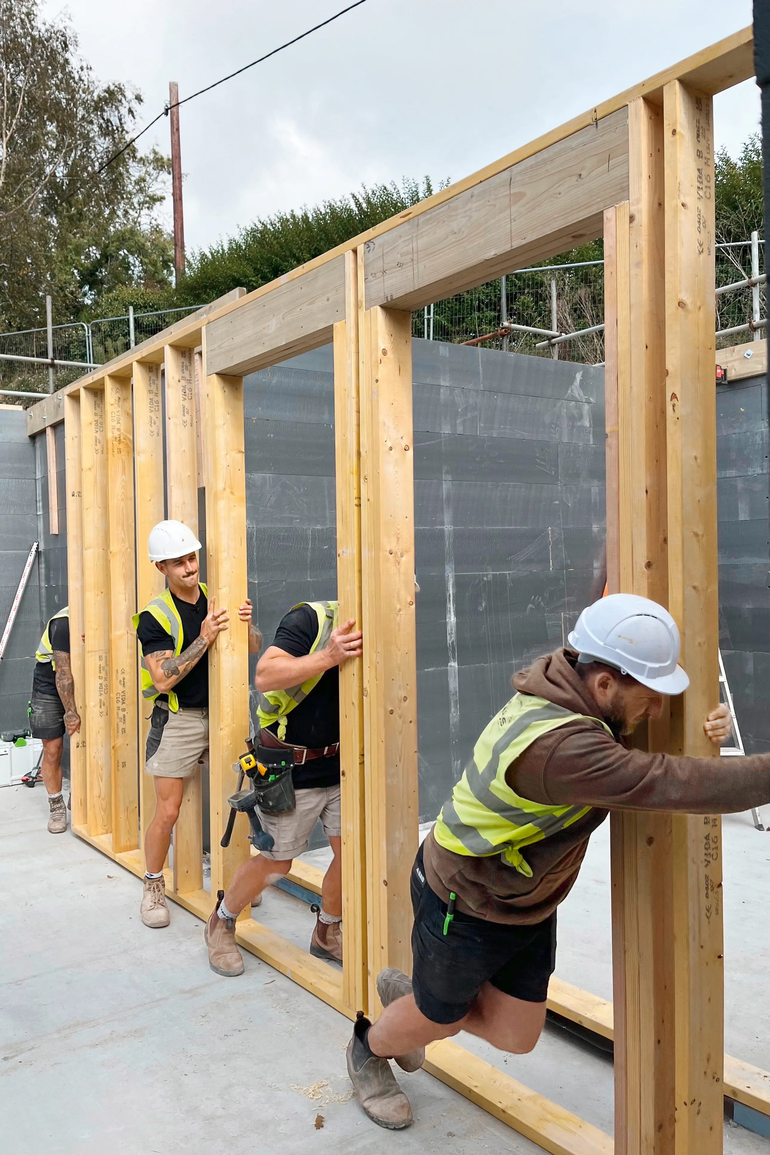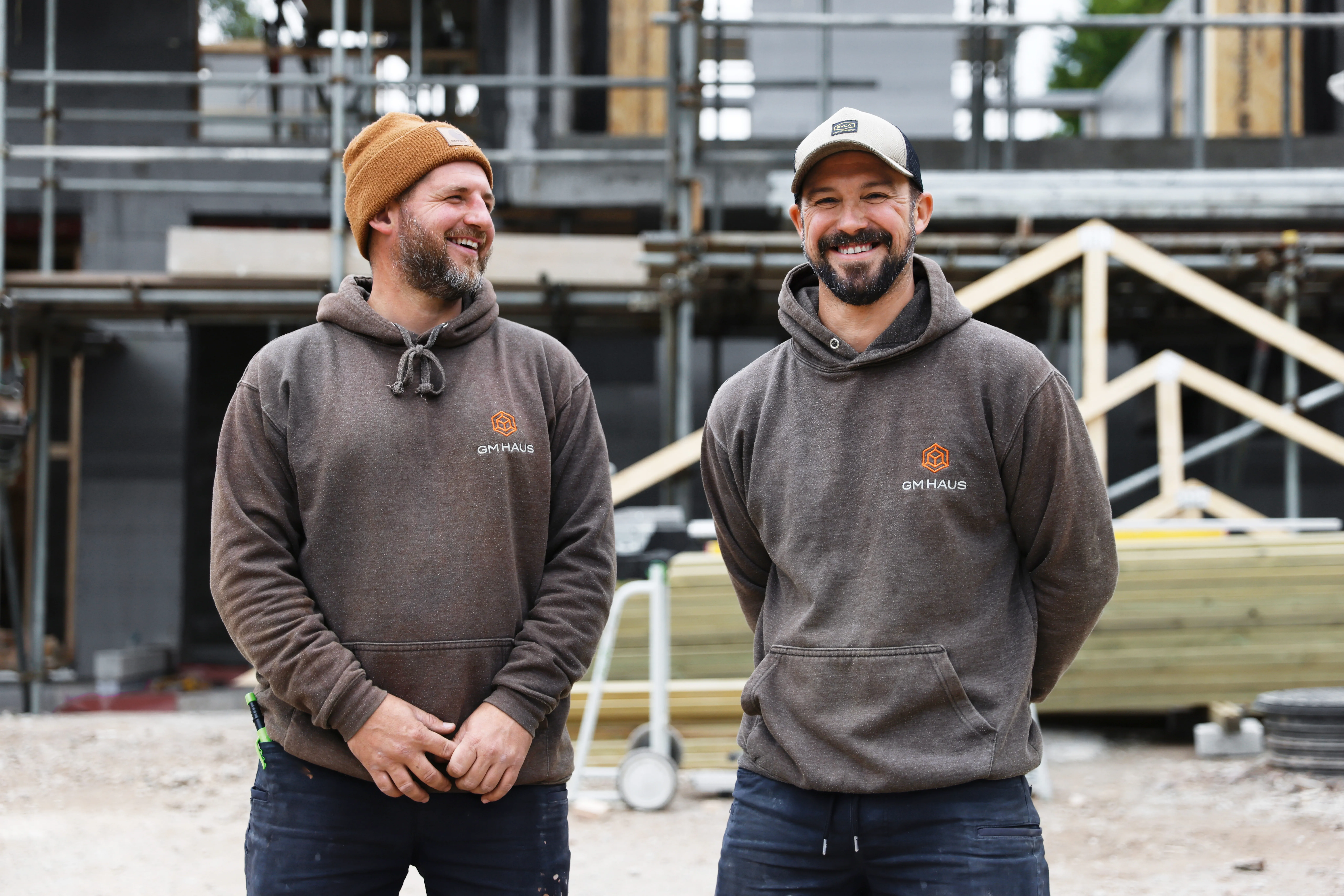 Il progetto: una casa familiare a due piani casa familiare a due piani - moderna, efficiente dal punto di vista energetico, con molto legno. Dal febbraio 2025, Sam e Nathan e il loro team sono stati in cantiere quasi ogni giorno. L'azienda GM Haus, che hanno fondato cinque anni fa, in qualità di "costruttore generale" si occupa in realtà l'intero processo di costruzione con tutti i mestieri: dalla demolizione della vecchia casa lavori strutturali, costruzione di strutture portanti in costruzioni in legno fino alla finitura degli arredi interni. interni. Tutto è stato impegnativo e impegnativo. Ma questo è esattamente ciò che i amano e quello che volevano fin dall'inizio.