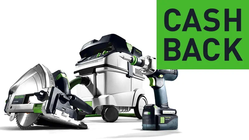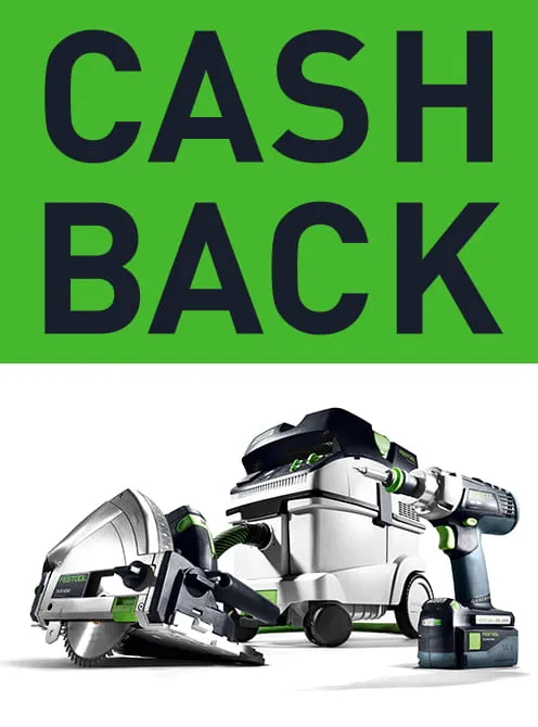 Ottieni fino a 100€ di rimborso! Acquista un utensile Festool dal 1 luglio al 31 agosto 2019 e fai richiesta online. E' facile: