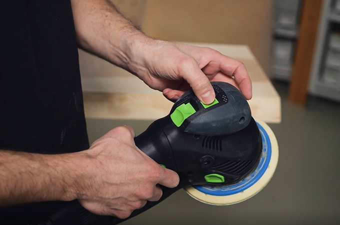 Una volta livellati i colpi di pialla, passa alla grana P120. Ora esegui un'altra passata con l'impostazione di levigatura grossolana.