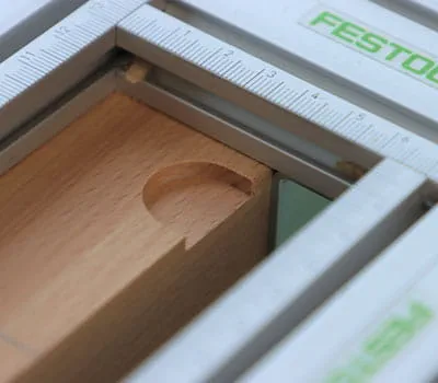 Il risultato è una ferramenta inserita correttamente. La dima di fresatura multipla MFS è ideale per questo tipo di lavoro, in quanto è veloce da impostare, può essere adattata a tutte le dimensioni e anche le distanze dai bordi possono essere impostate utilizzando le battute angolari. Naturalmente, la si può usare non solo per incassare cerniere o cardini, ma anche molti altri elementi di ferramenta.