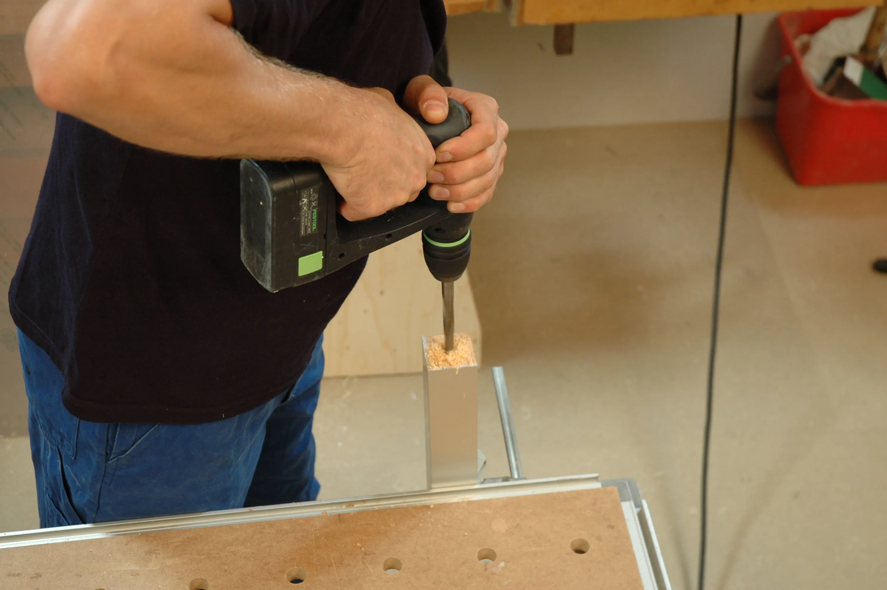 La profondità di foratura corrisponde alla lunghezza della vite della macchina. Il diametro di foratura dipende dal tipo di manicotto e dal produttore. Se si utilizzano i manicotti di giunzione, più facili da lavorare, è necessario forarli due volte dopo averli inseriti e assicurarli con viti Spax 3,5 x 35 per evitare che si sfilino.