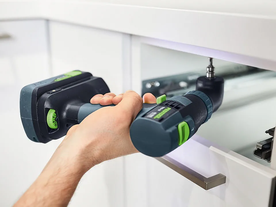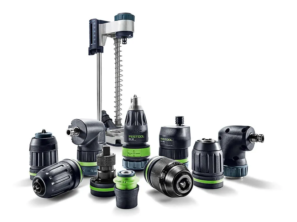 Gli avvitatori a batteria Festool si adattano perfettamente al sistema. I nostri accessori di sistema, come il sistema di cambio rapido, il Dispositivo angolare, il Mandrino eccentrico, il Limitatore di profondità, le Batterie, i Caricabatterie, gli Inserti e le Punte per un'ampia gamma di applicazioni, rendono il tuo lavoro con un avvitatore a batteria Festool ancora più efficiente.